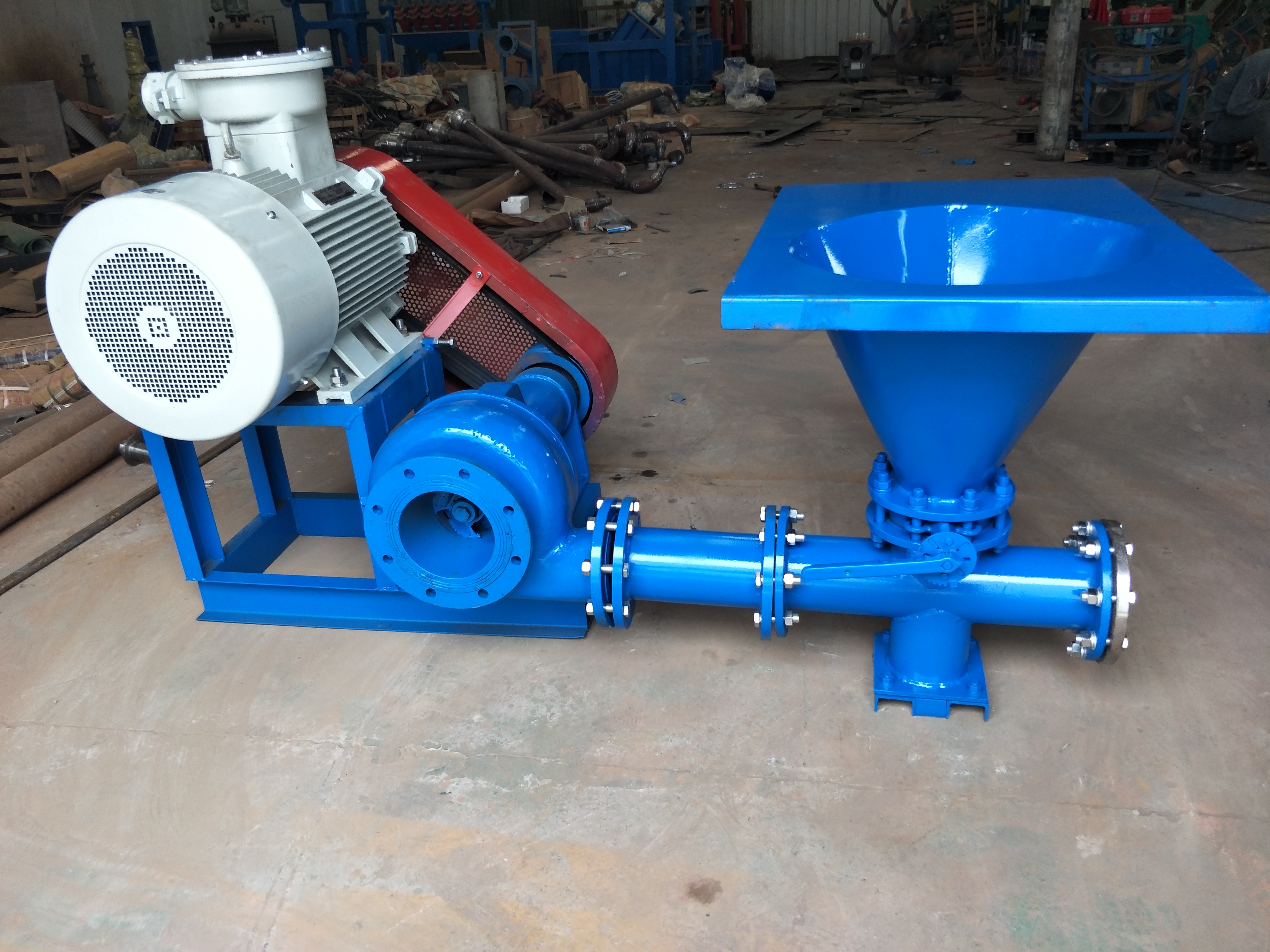 高(gāo)效剪(jiǎn)切泵是鑽井液循環係統中的重要設備之一,主要用來處理化學(xué)藥品及搬土,達到迅速配置鑽井液的目的。剪切泵設計有特殊的葉輪結構,在液(yè)流通過時可(kě)產生強大的剪切力,對液流中的化學藥品顆粒、搬土等固相進行強(qiáng)力的粉碎分散,可使液流中的固相破碎並均勻分布。現場使用效果分析,用剪切泵處理鑽井液,可節(jiē)約搬土(tǔ)用量20%以上,並且能夠顯著改善鑽(zuàn)井液濾失性能和泥餅質量,建立良好的凝膠強度,更有效地保護井壁和(hé)防止油層汙染,使鑽井液在低剪(jiǎn)切速率下的攜砂能力顯著提高。